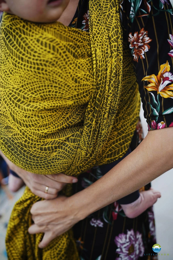 TAGI: noszenie dziecka, wyprawka dla noworodka, prezent dla noworodka, żółta chusta do noszenia dziecka, chusta żakardowa, chusta tkana, chusta wiązana