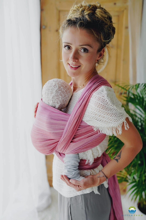• Chusta do noszenia dziecka z bambusem, tkana splotem skośno krzyżowym - Bambusowy Rubin o długości 3,2 m, sprawdzi się idealnie jako pierwsza chusta. Świetnie się nadaje jako chusta do noszenia niemowlaków, a dwie różne krawędzie ułatwią jej wiązanie.