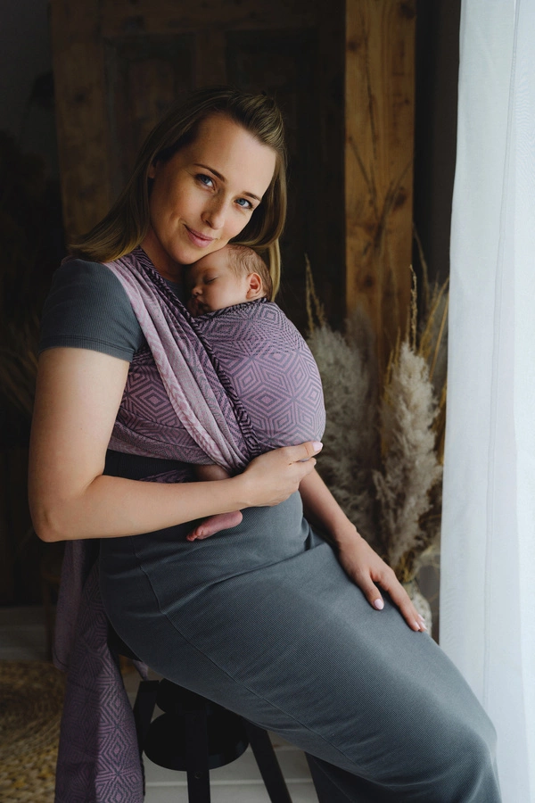 TAGI: noszenie dziecka, wyprawka dla noworodka, prezent dla noworodka, różowa chusta do noszenia dziecka, chusta żakardowa, chusta tkana, chusta wiązana